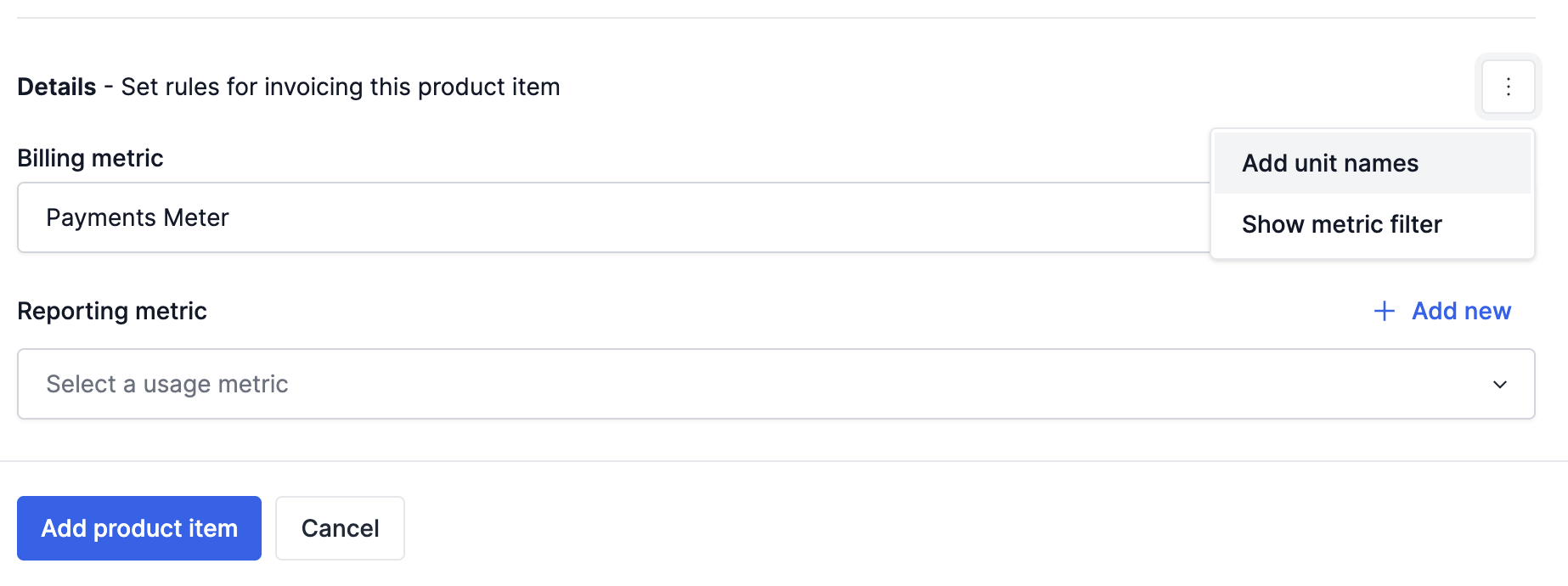Product items are invoiced based on usage of the product, such as per card authorization or per support ticket. The quantity for these product items is calculated using methods such as SUM, MAX, or MIN. Read more about calculation methods here.