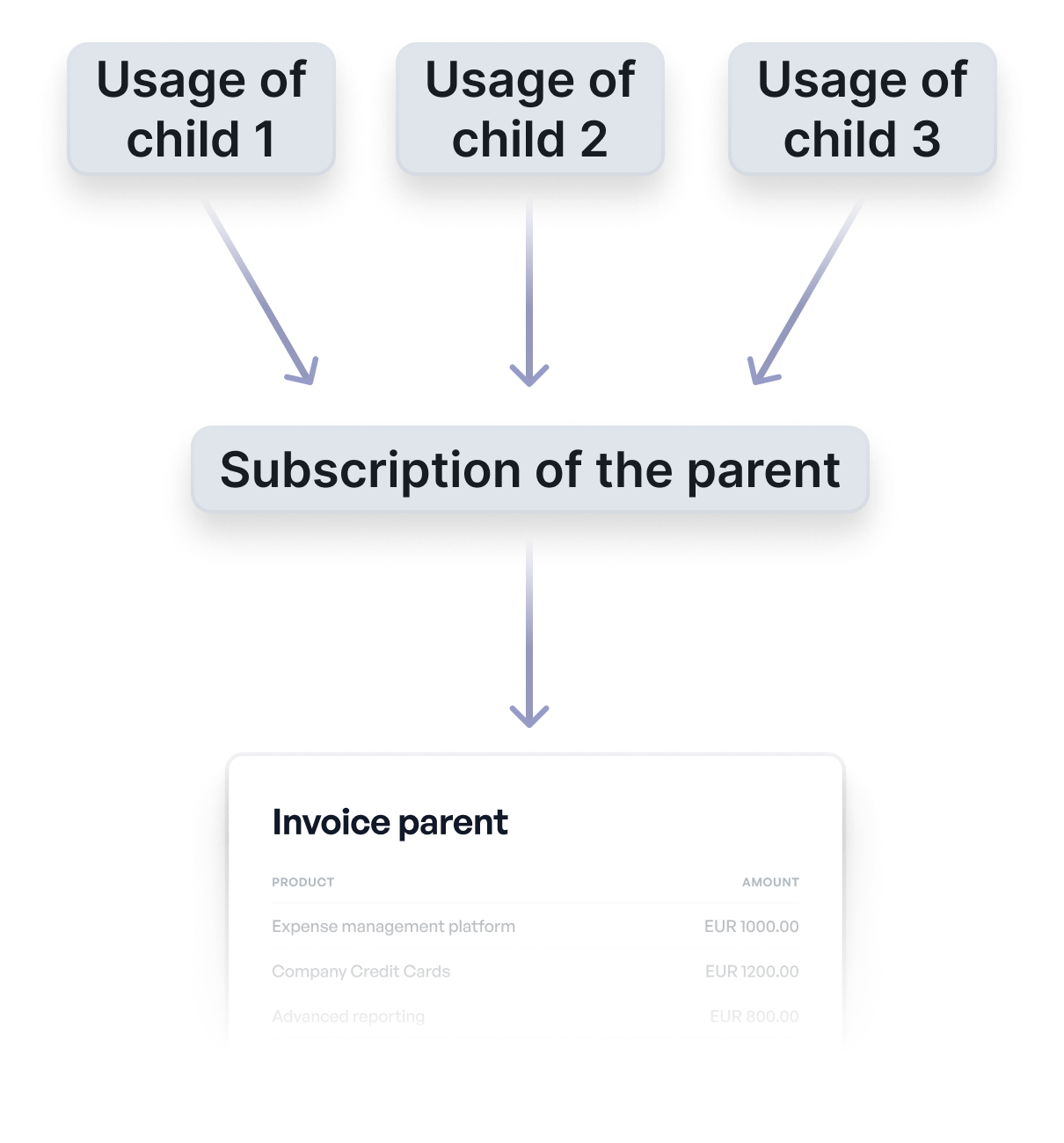 Issue a unified invoice to the parent entity for usage across multiple child entities.