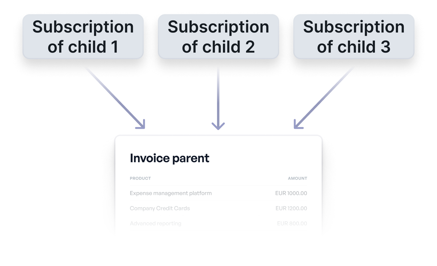 Child subscriptions generate invoices at the parent level without individual child splits.
