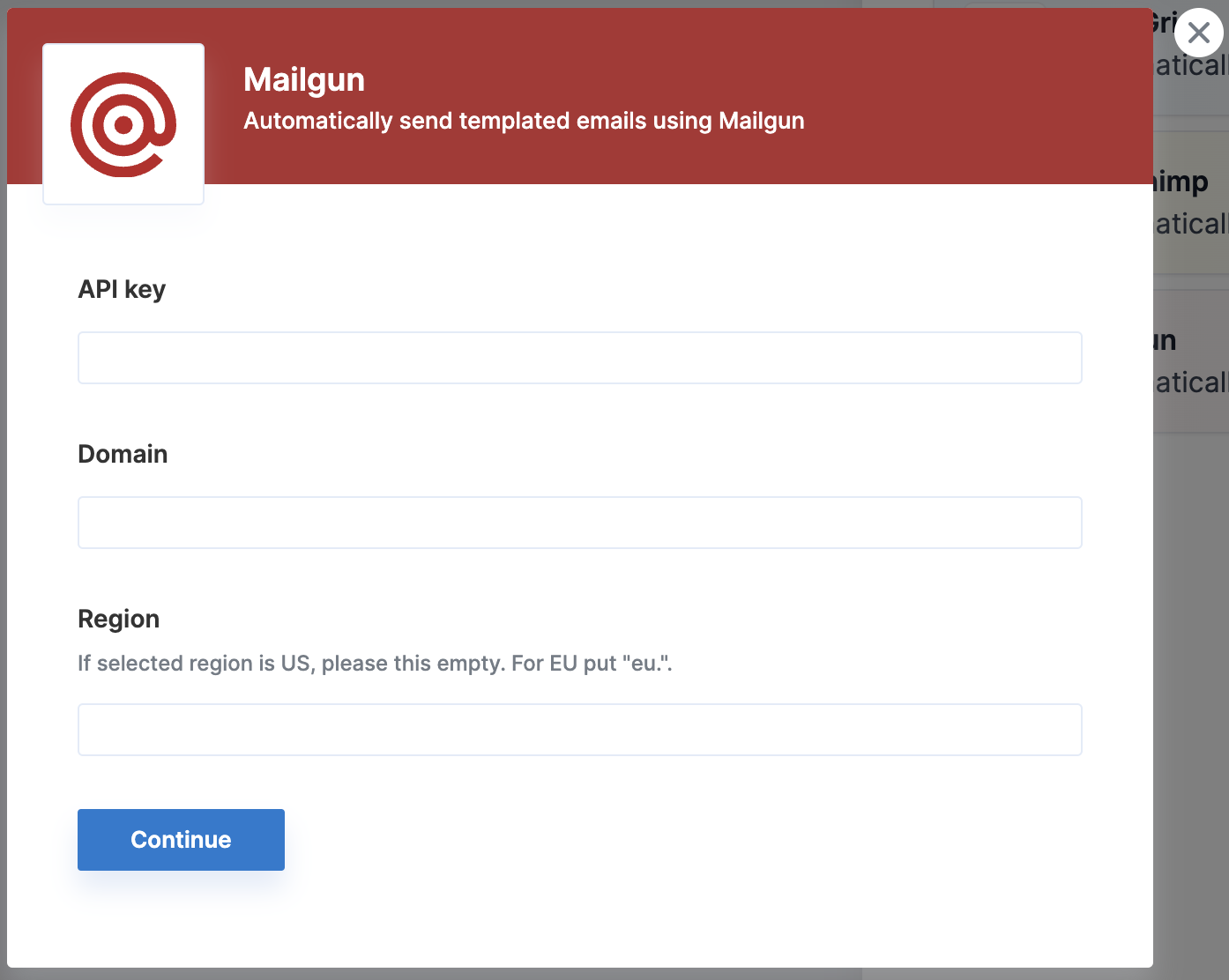 To send out templated emails to your customers we offer an integration with Mailgun.