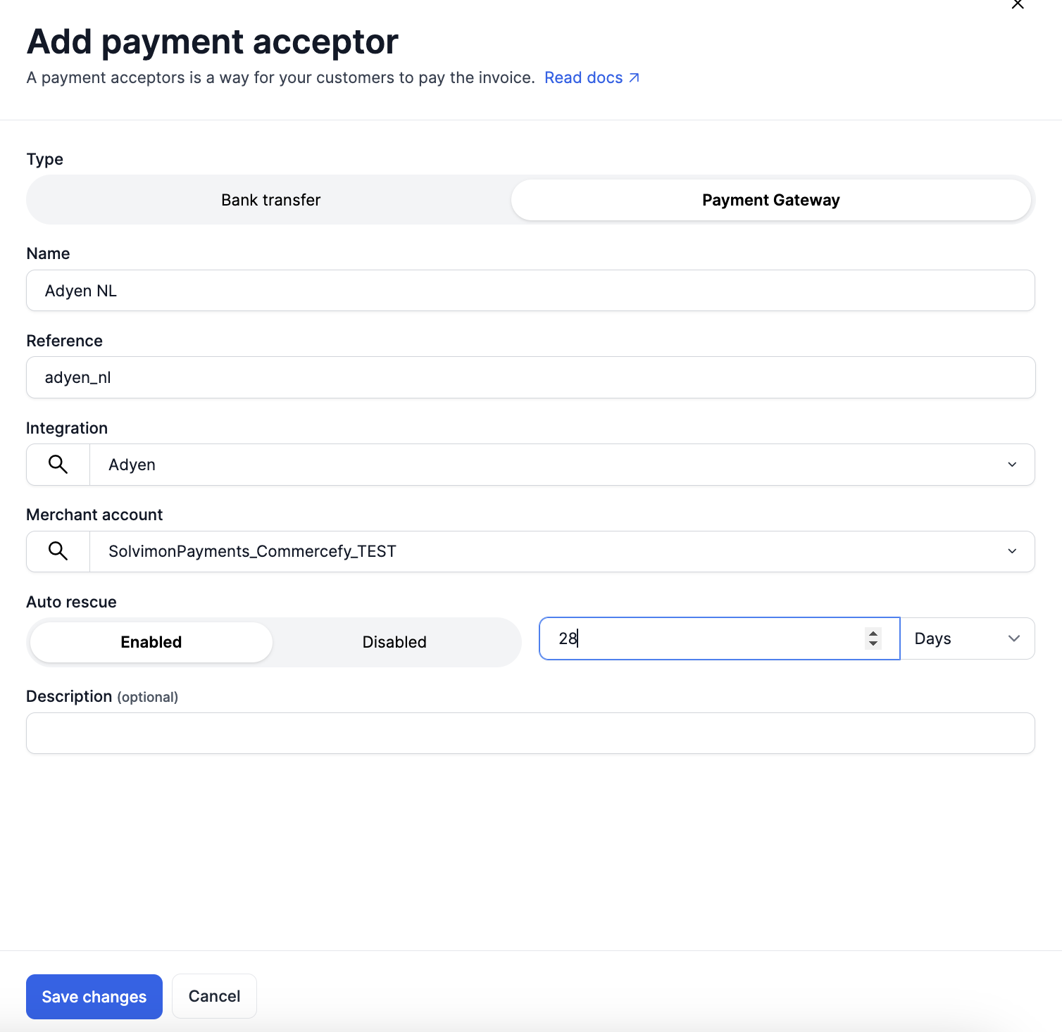 Setting the Auto-rescue window in Solvimon can be done in the Billing Entity - > Payment Acceptor settings.