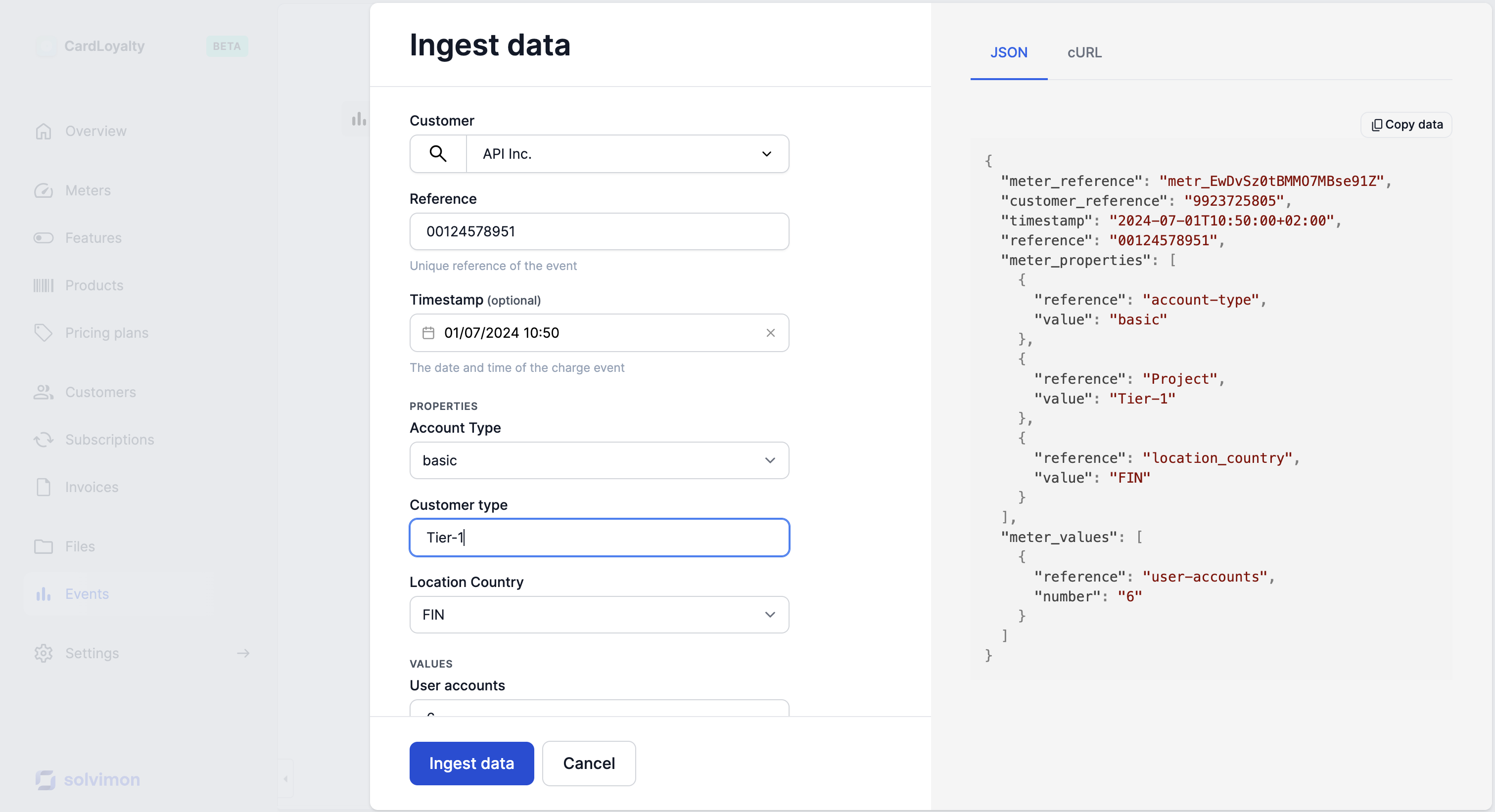 Important to note is that you need to create the event as a ‘mirror’ event with the same meter properties, in case you have price rules that might be triggered by the event.