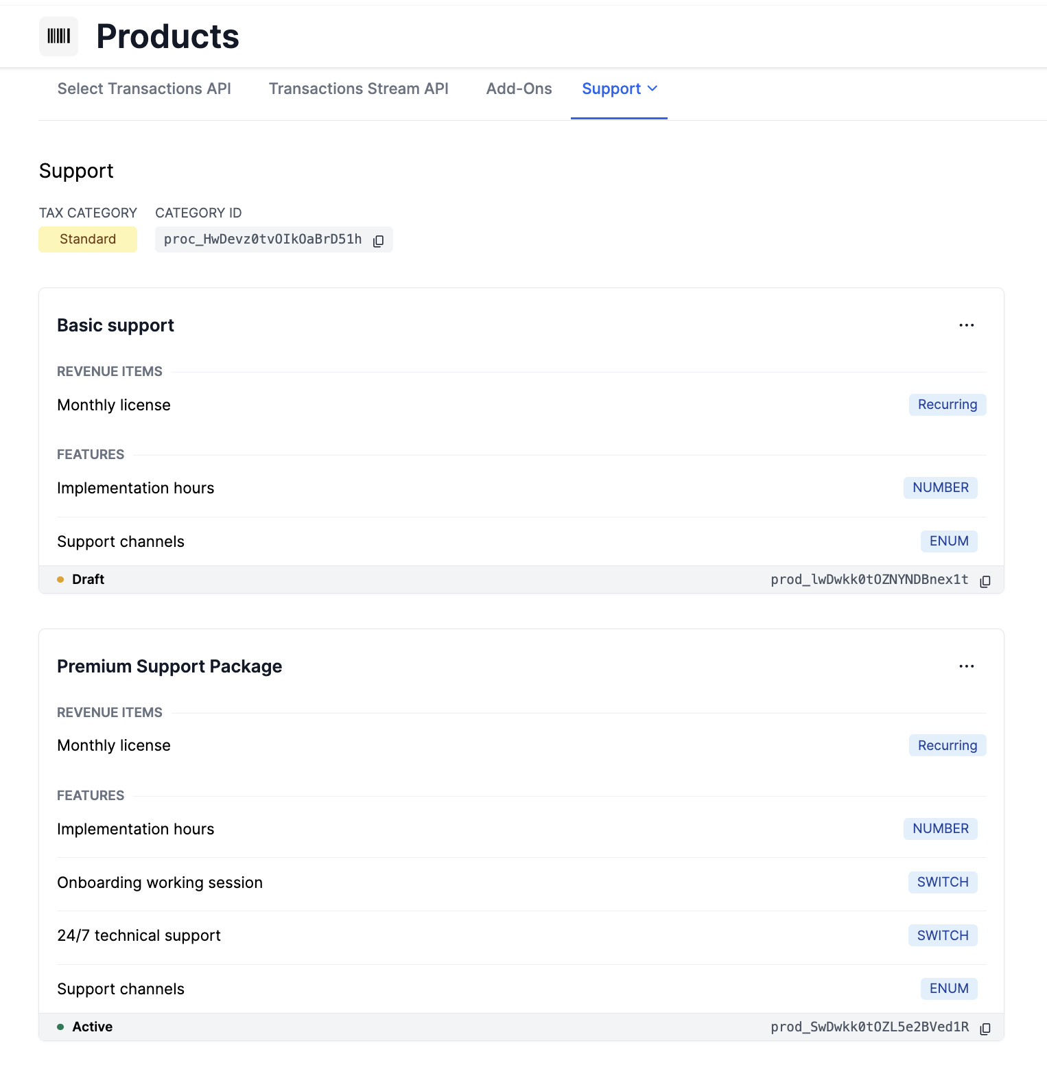 Features are their own resources and set up separately, before adding them to a pricing plan as entitlements. We also offer the option to connect a feature with NUMBER or AMOUNT type to a meter value of the same type, calling them usage based features due to the option to measure usage just like with products.