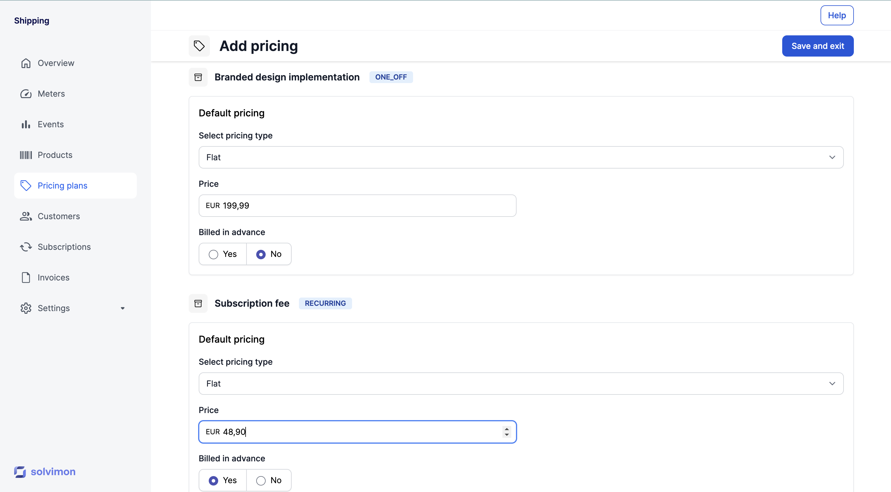 One-off and recurring pricing types have the option to be billed in advance. In that case, the costs are on the invoice that comes before the start of the billing period of the customer.