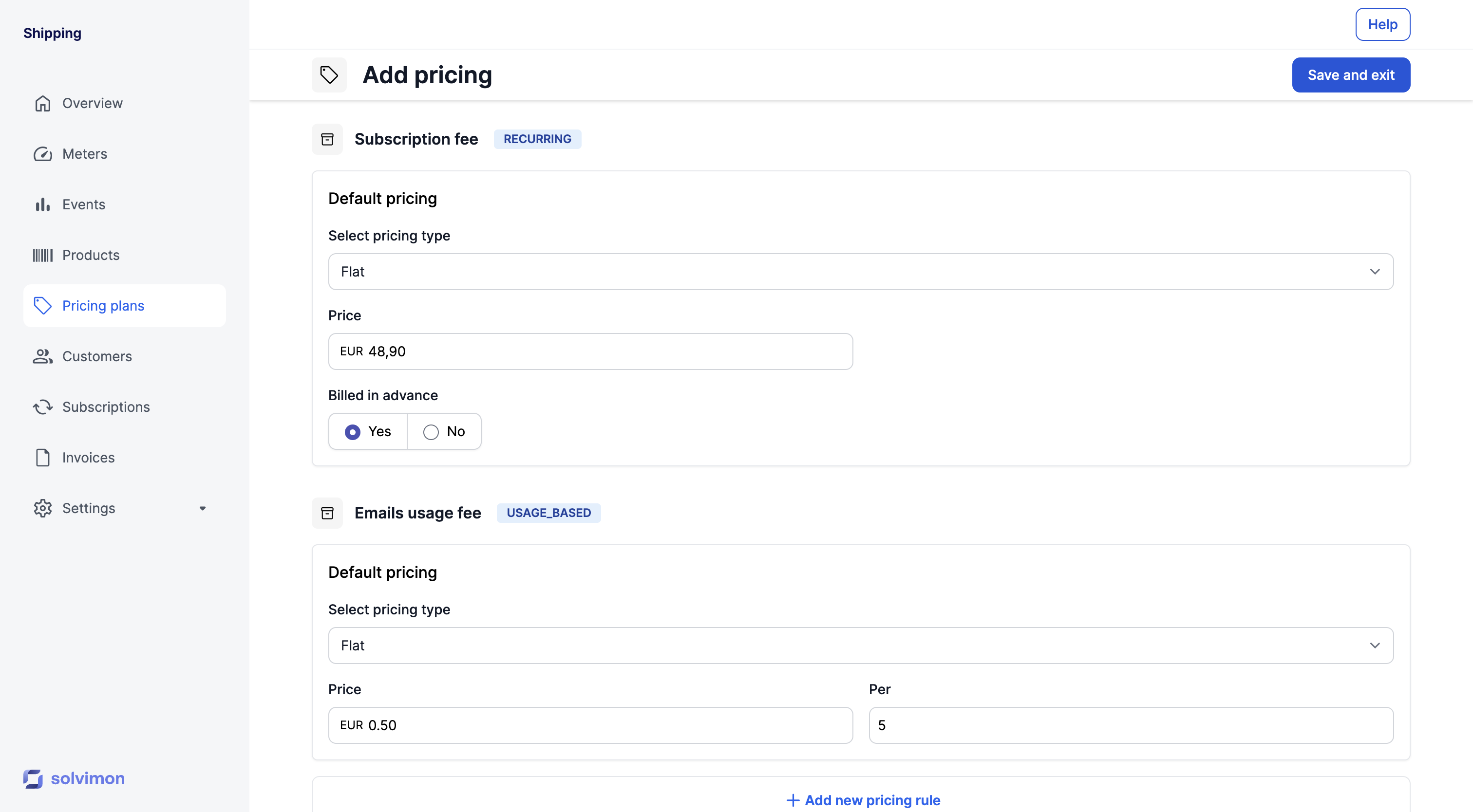 Recurring pricing refers to the standard pricing model in which a customer is billed periodically, for the ongoing usage of a product. The most common use case for a recurring pricing type is a subscription fee. The Solvimon platform has two pricing method types for products with recurring charge types, they are described below.
