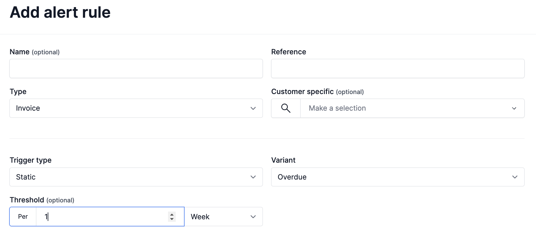 For example, you can create a rule to alert if an invoice is unpaid 7 days after its due date, or 1 month after.