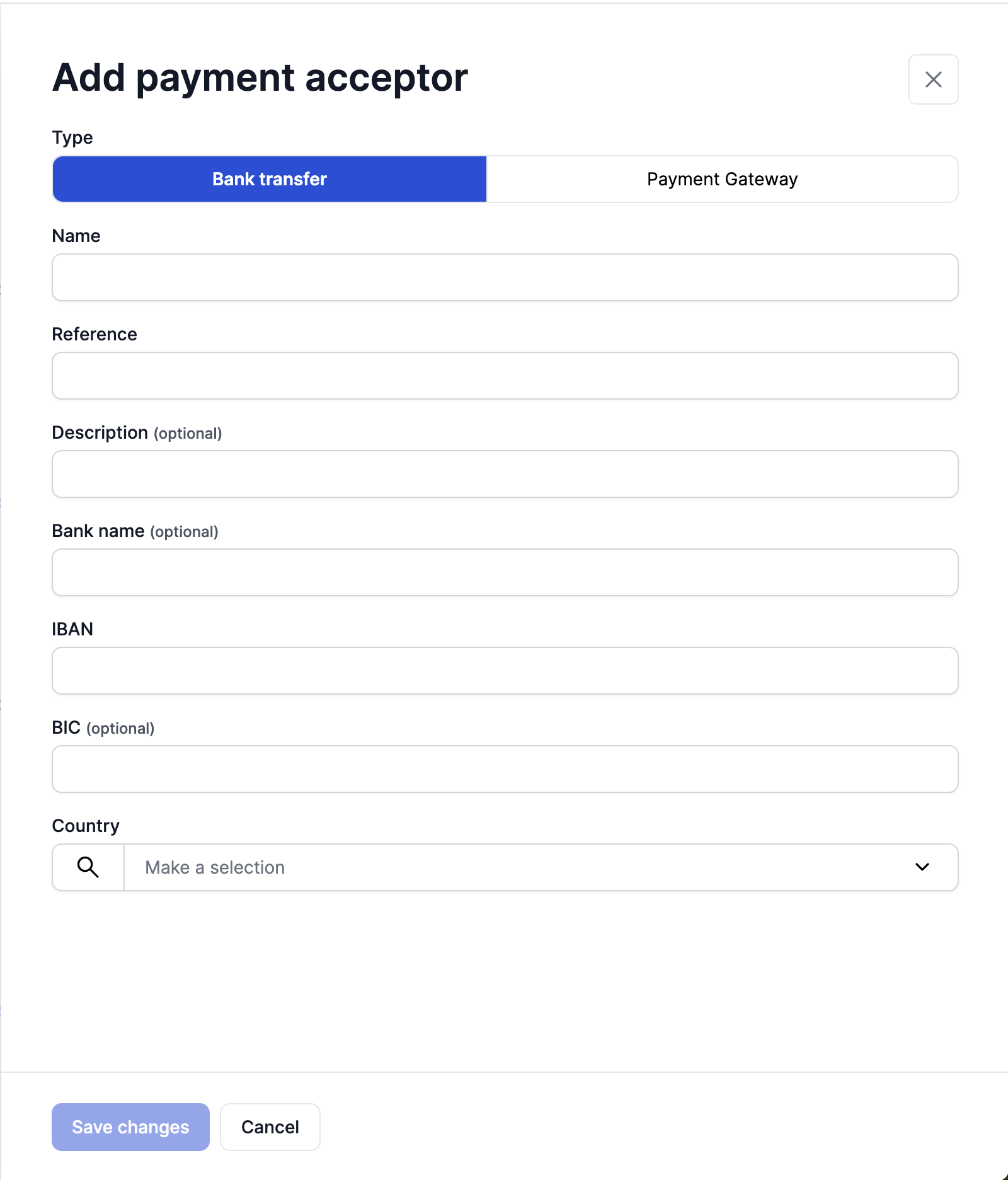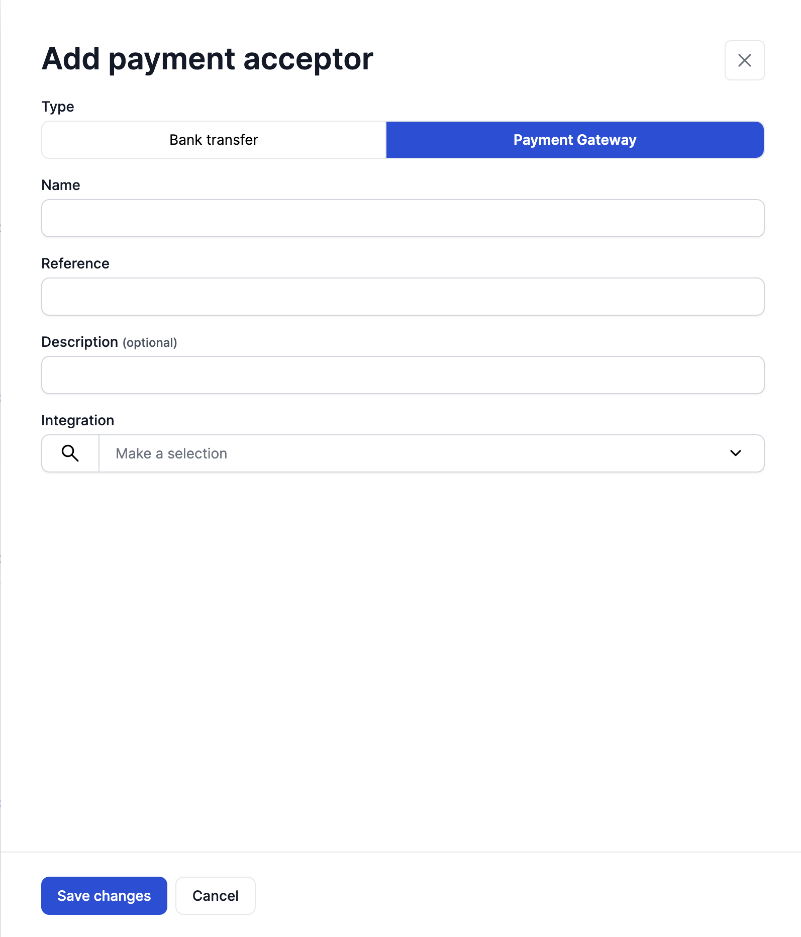 Payment acceptors are ways for your customers to pay the invoice. They are more elaborate than the usual Payment Methods as they also include integrations with PSP tools.