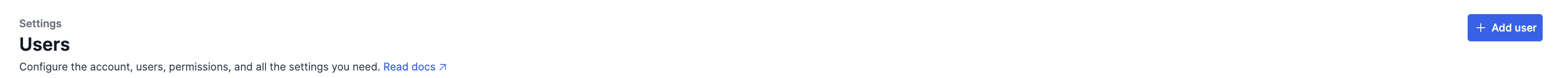 To create a new user, go to Settings β Users and click on + Add user in the top right corner.