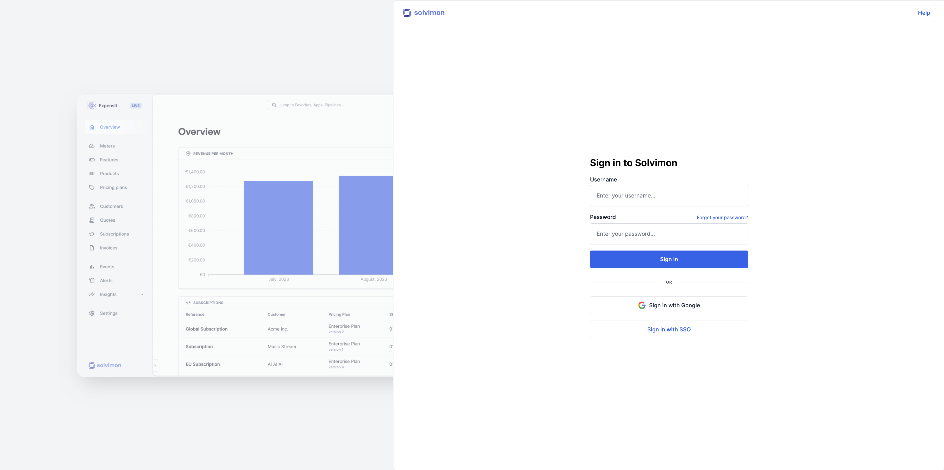 Solvimon supports single sign-on with Google accounts. You can reach out to us to configure it for your users, where any specific domains youβd want to whitelist for your organisation can be provided.