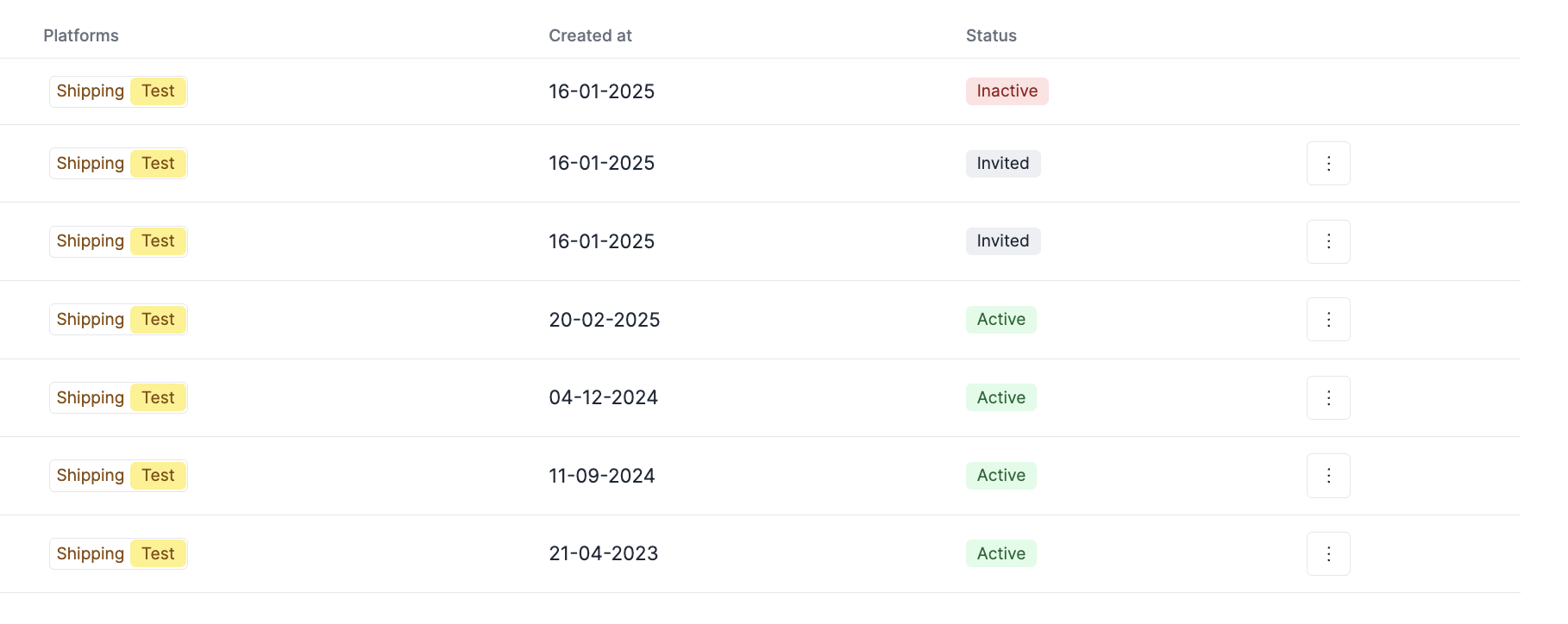 For Invited or Active status, it is possible to deactivate the user, removing its access to the platform.