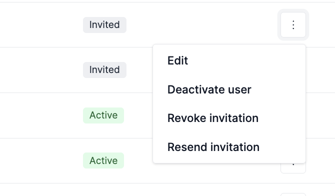 For users whose status is Invited, it is possible to either resend the invitation email, or to revoke the invitation request.