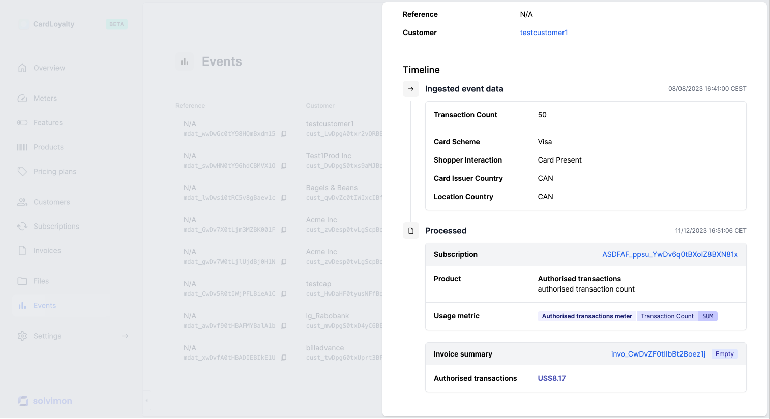 Solvimon models usage as a series of events, each capturing how your customer interacted with your product.