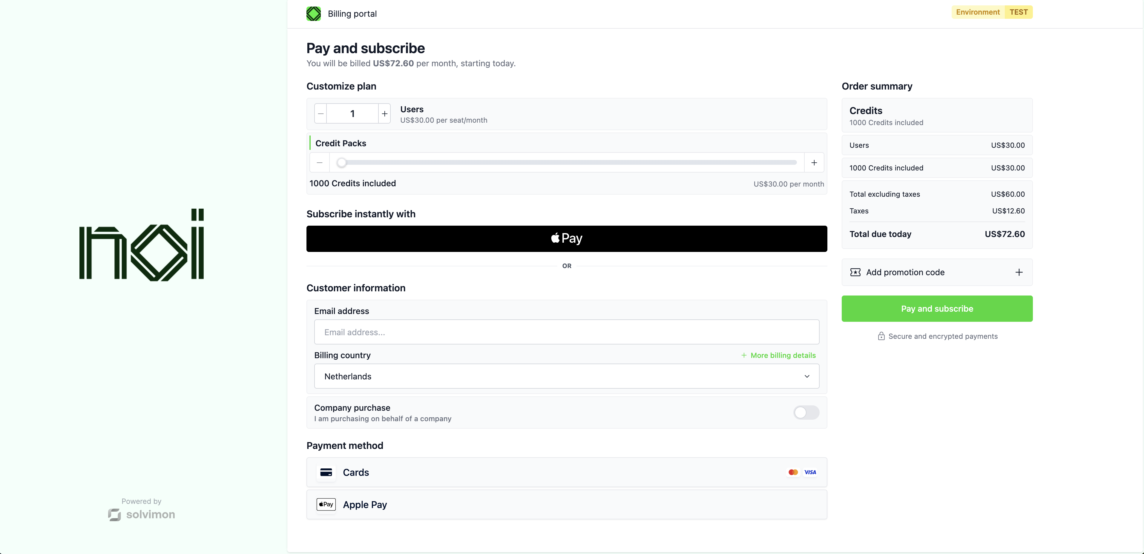 The Checkout screen renders a full subscription checkout flow for a customer. Mount it when you want to let a customer initiate a new subscription.