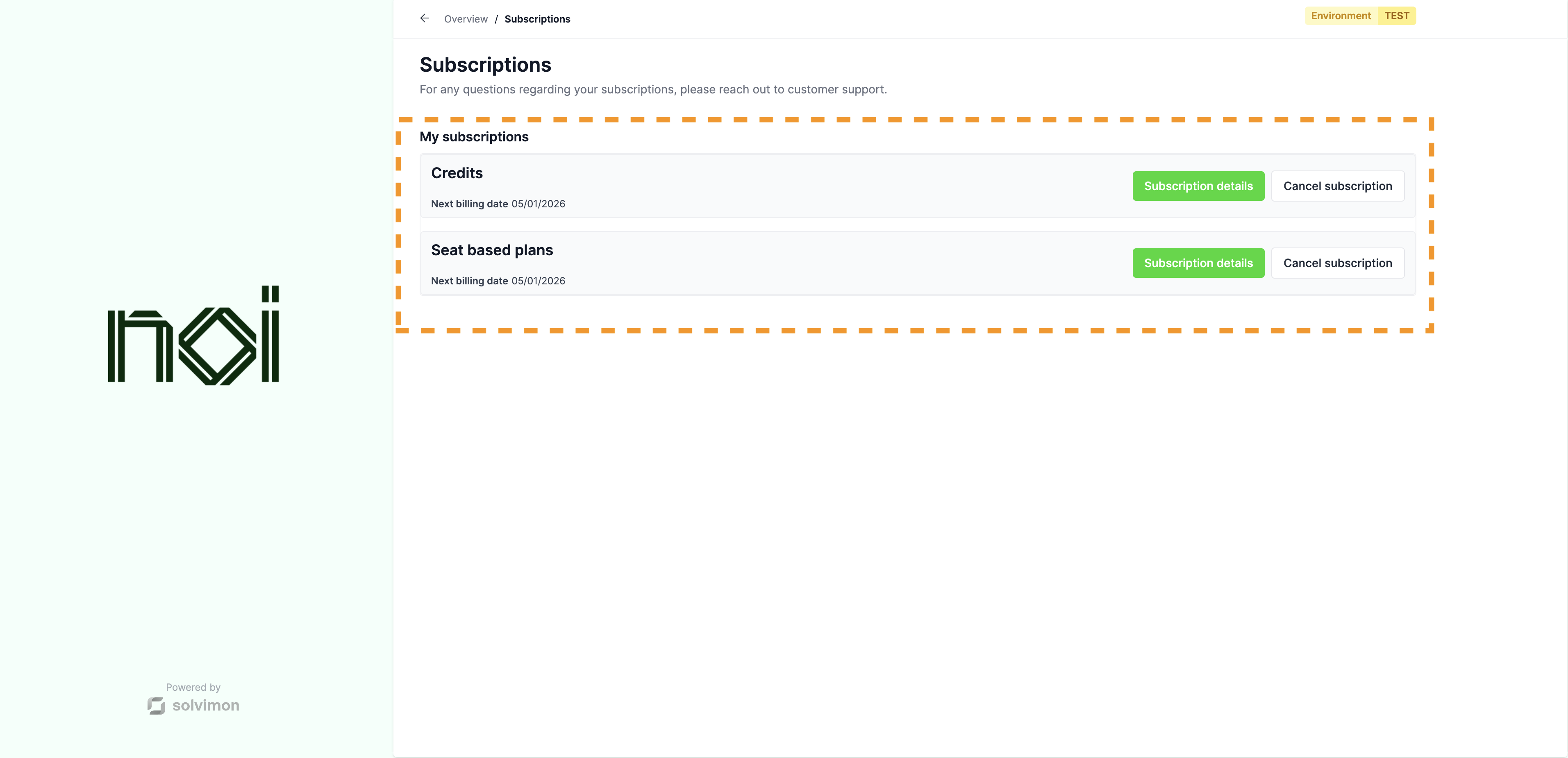 The Subscriptions list component renders a customer’s active subscriptions with cancel, renew, and view actions. Use it when you want to embed subscription management into your product.
